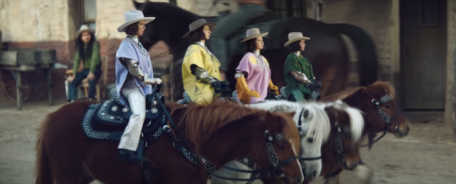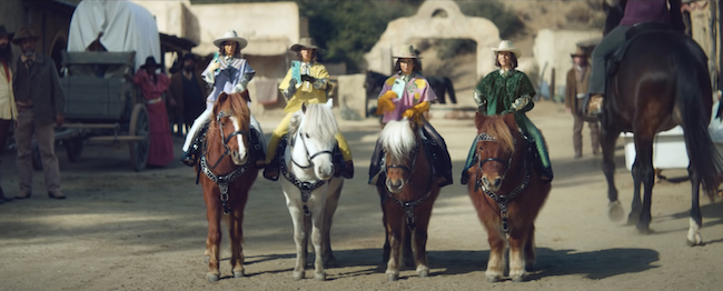 Zabé: The first commercial was comedy, with director Andreas Nilsson, who’s really quirky and funny. He juxtaposes elements of reality in such a bizarre way that creates these great little universes. There’s a new online store, Klarna, where you can buy things and pay in four smaller payments. So we had Maya Rudolph as four tiny cowgirls, quarter size, riding miniature ponies. It’s a funny commercial, very simple, but there was a wink to old westerns.