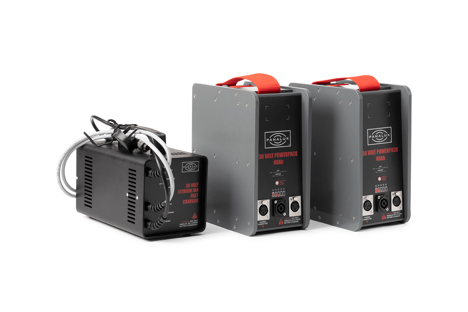 Made for Panalux by Hawk-Woods, this 30V 40Ah powerpack features a safe and rugged design, extra-long battery life, and a convenient LED battery-level indicator.