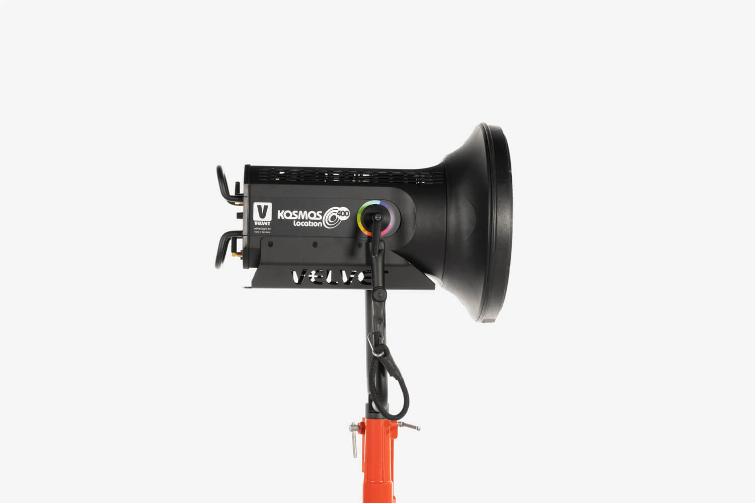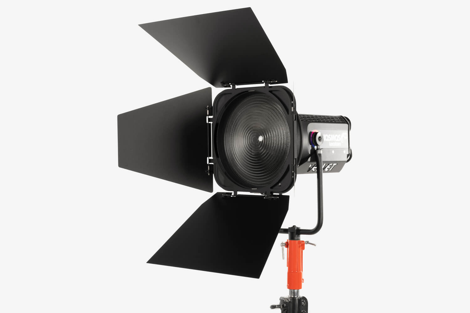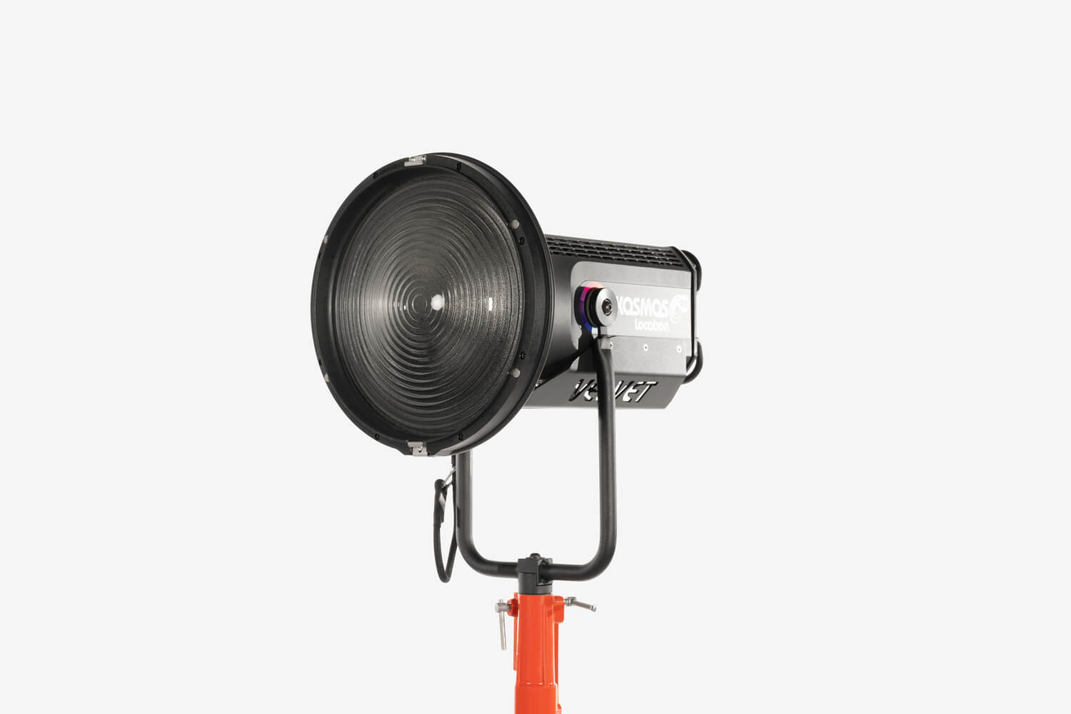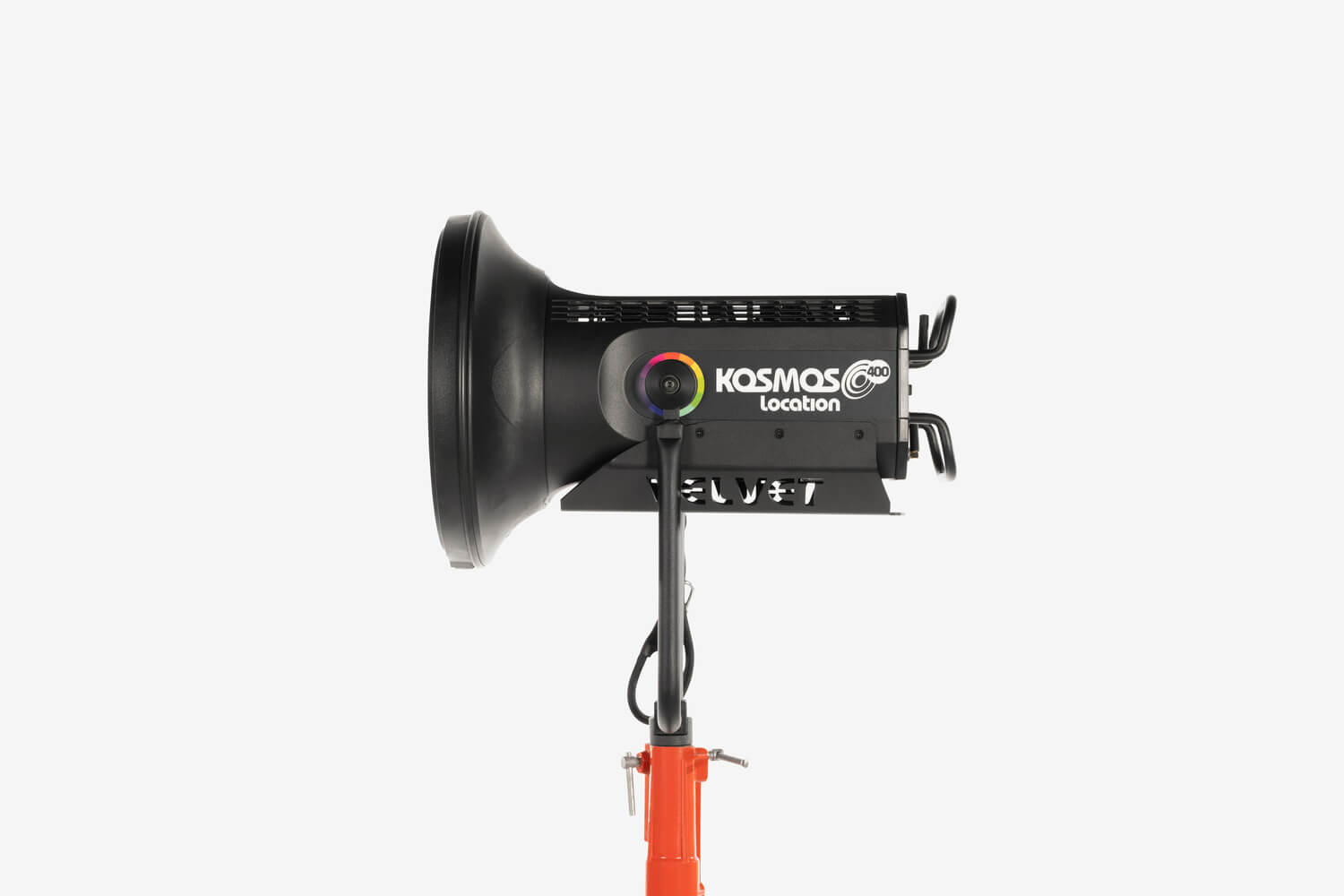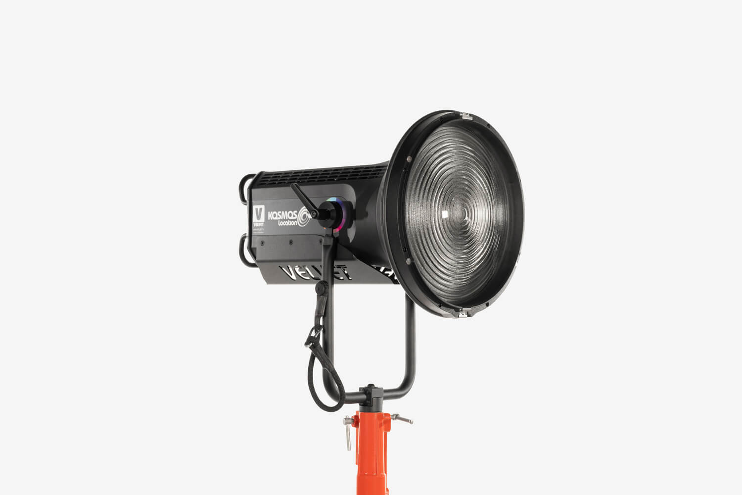 The Kosmos 400 Color Location from Velvet is a compact, 400W, color-tunable LED Fresnel. The head features a 300mm (12”) glass lens and a motorized zoom that can be adjusted from 15° spot to 56° flood either locally or via any wired or wireless control mode.