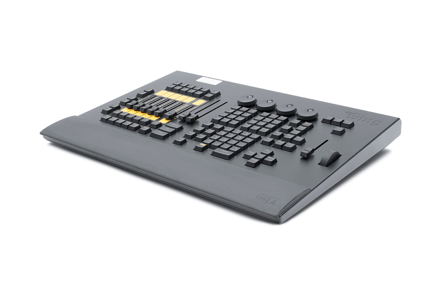 The MA onPC Command Wing incorporates the command section of the GrandMA2 console and connects via USB to a computer running GrandMA2 onPC software.