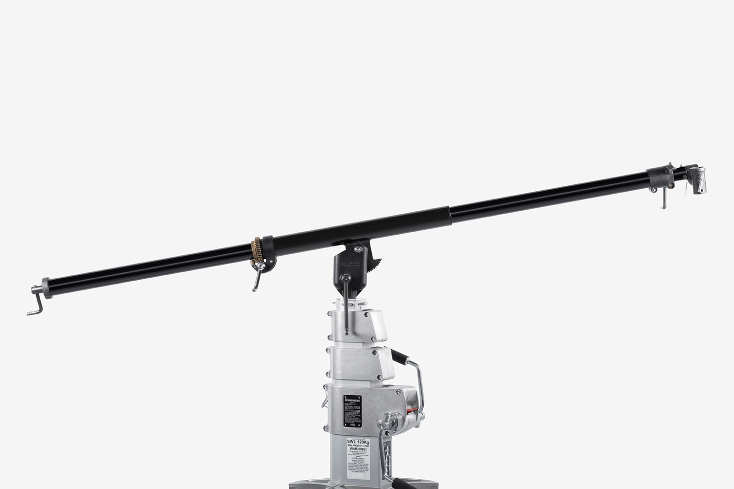 The two-section 425B Mega Boom supports up to 13.23 lbs. (6kg) at its full 12’ (365cm) extension. Geared crank handles control pan, tilt, rotation, and extension.