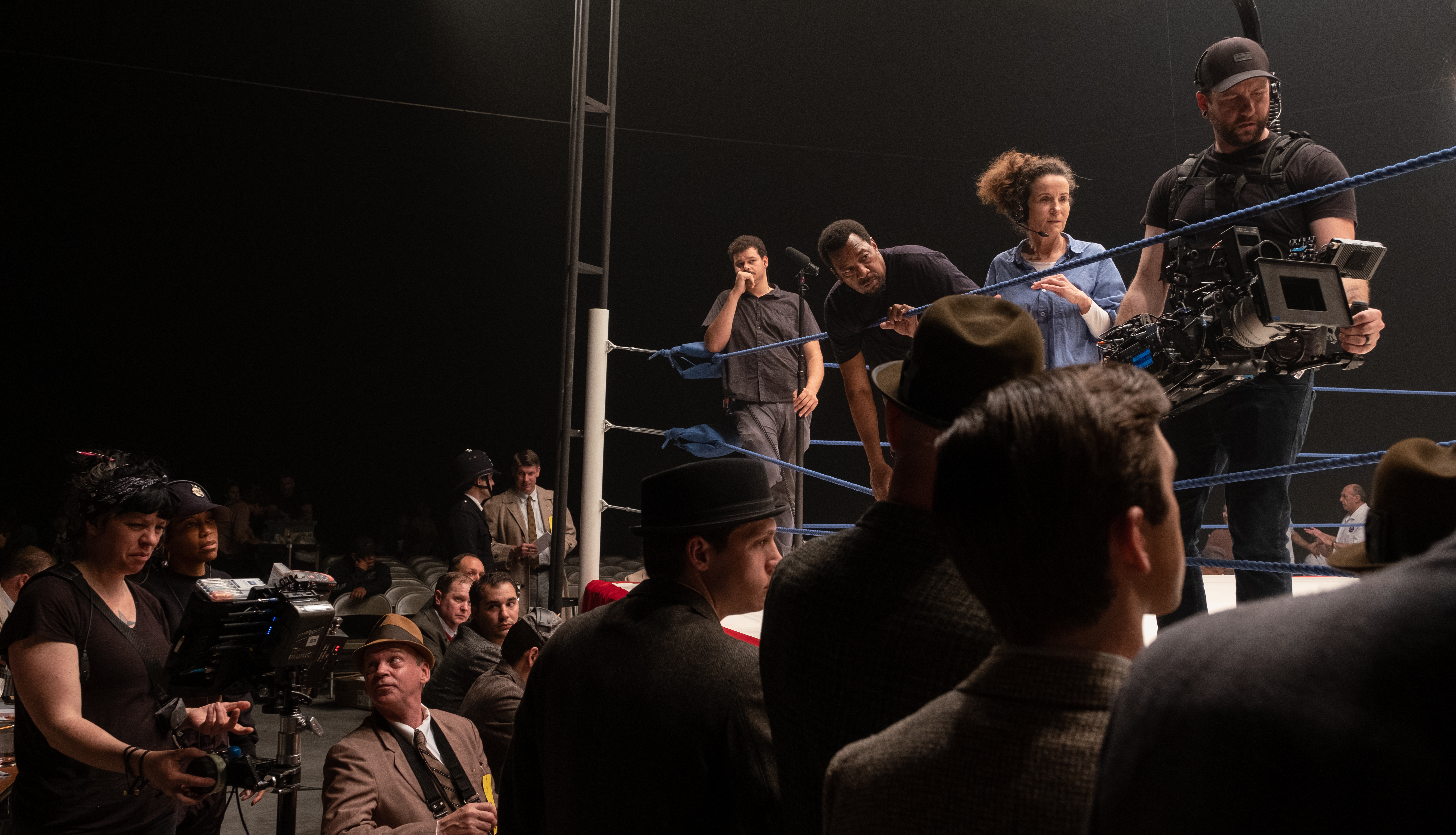 In addition to Clay’s historic fight with Liston, One Night in Miami… depicts an earlier bout in which Clay fought Henry Cooper in London’s Wembley Stadium in 1963. Although they take place on different continents, both matches were shot on the same stage at New Orleans’ Second Line Stages. During prep, Reiker recalls, “Regina and I watched a lot of boxing films together. As much as we love Raging Bull, we did not want our scenes just going to black. We wanted to feel the audience. I created little pinpoints of light so it felt like it kept going, and then visual effects did an incredible job with the extensions.”