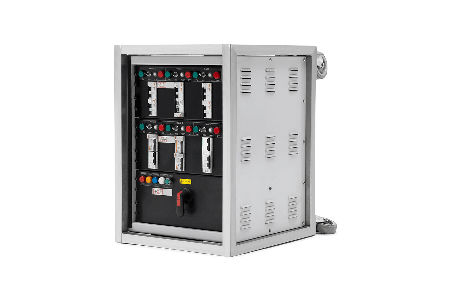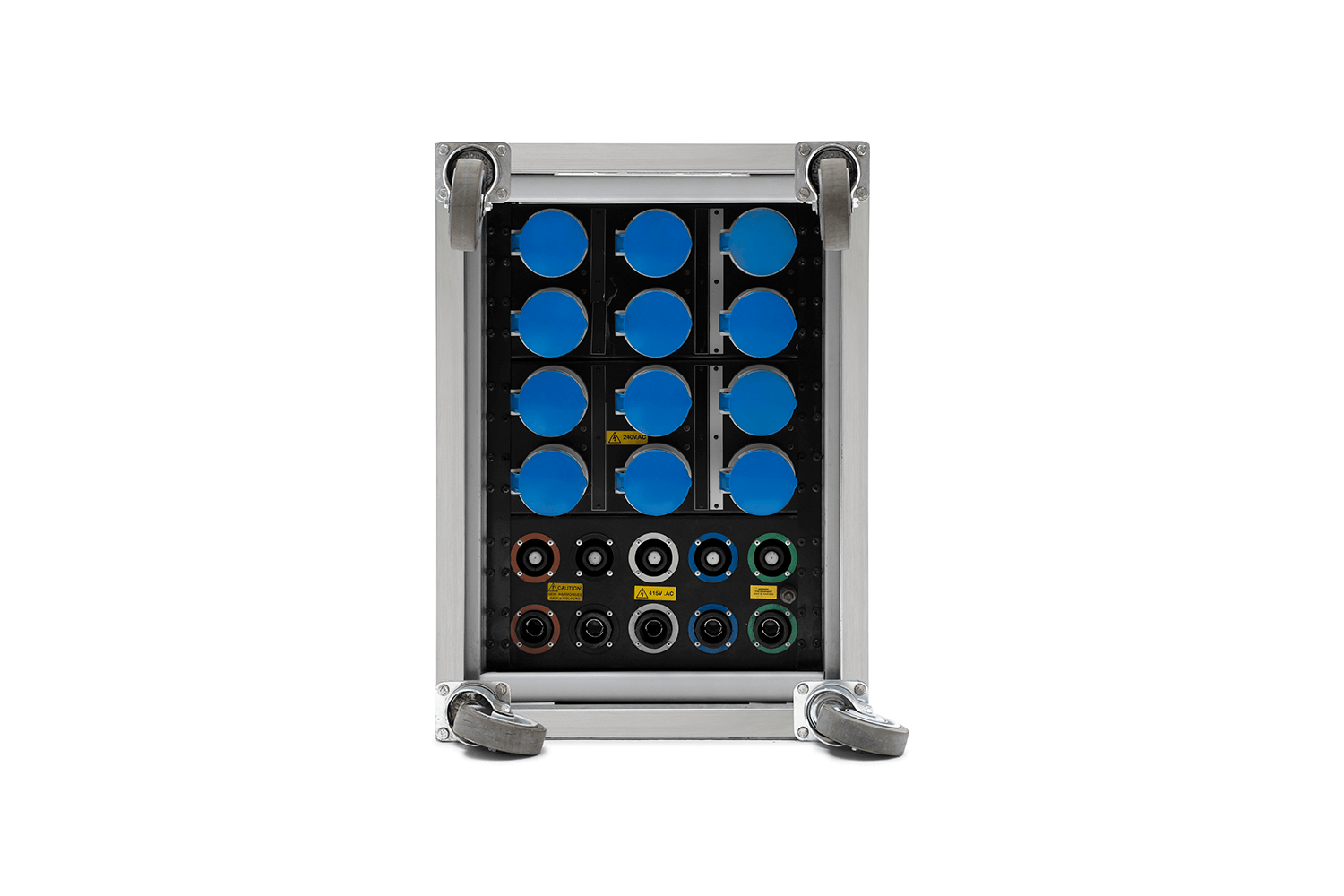 Featuring a high-density distribution (HDD) infrastructure, this box offers a 0.2 BAC 3-phase input with 12 63A outputs.