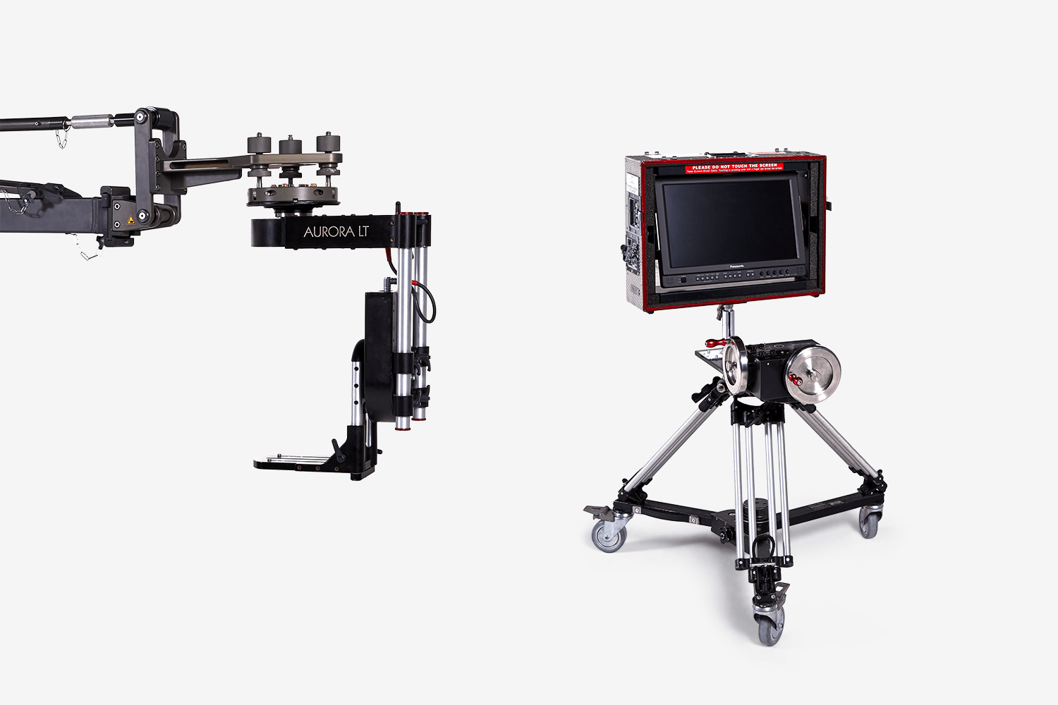 The Aurora LT offers plug-and-play operation with no specialist technical knowledge required. Taking only minutes to set up, the system uses just one cable between the console and head. While compact and lightweight, the Aurora LT was designed to hold full-size camera packages and can easily expand for larger cameras. It can also be made extremely compact, enabling the camera to fit into tight spaces and providing flexibility for every shooting situation.