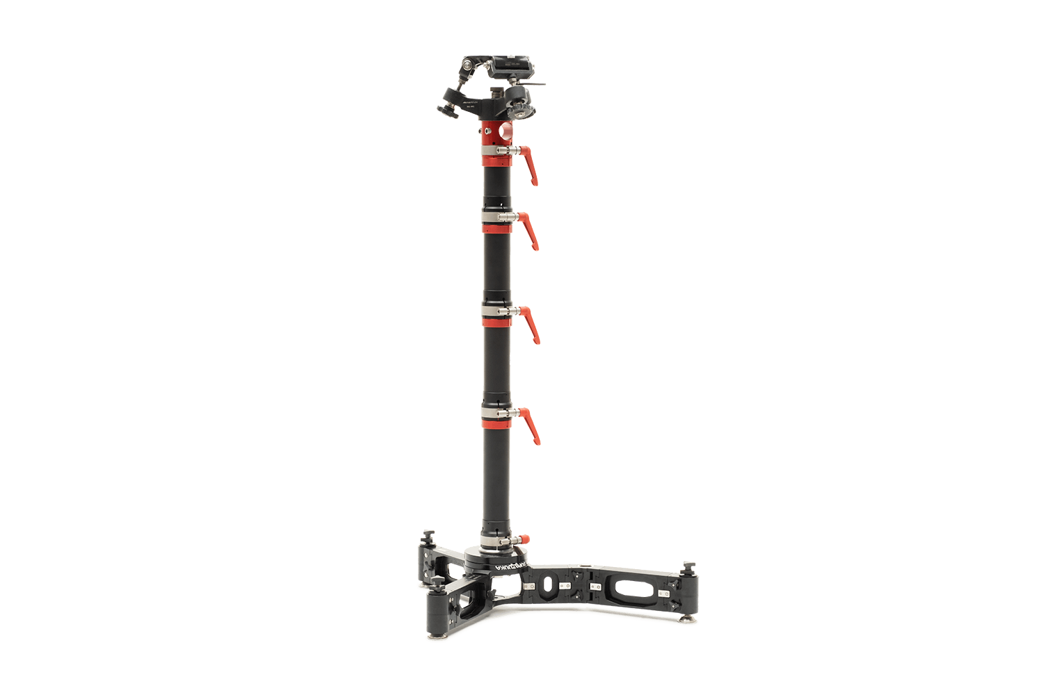 A bazooka’s compact footprint enables camera placement in cramped confines or unusual spaces that might prohibit the placement of a dolly or tripod. Six incremental modules allow the bazooka to be configured in varying heights.