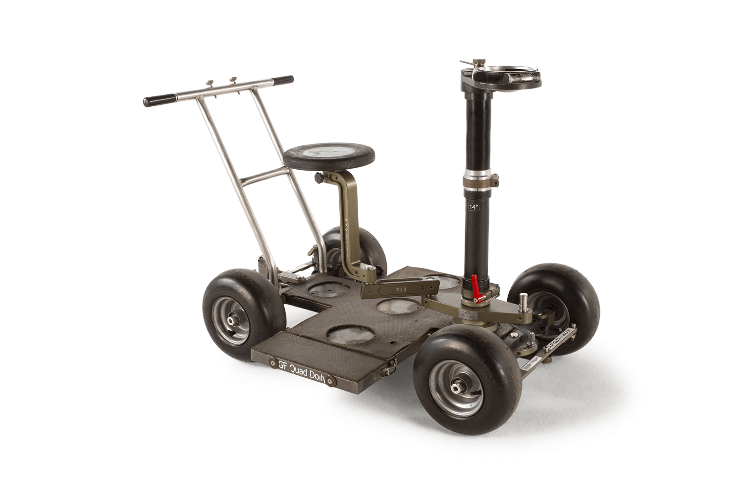 The Quad Dolly is a compact, 29″-wide dolly that easily fits through doorways and can perform tight maneuvers on set. With the ability to instantly select front, rear, or four-wheel inverted steering, the Quad Dolly can handle a variety of shots.