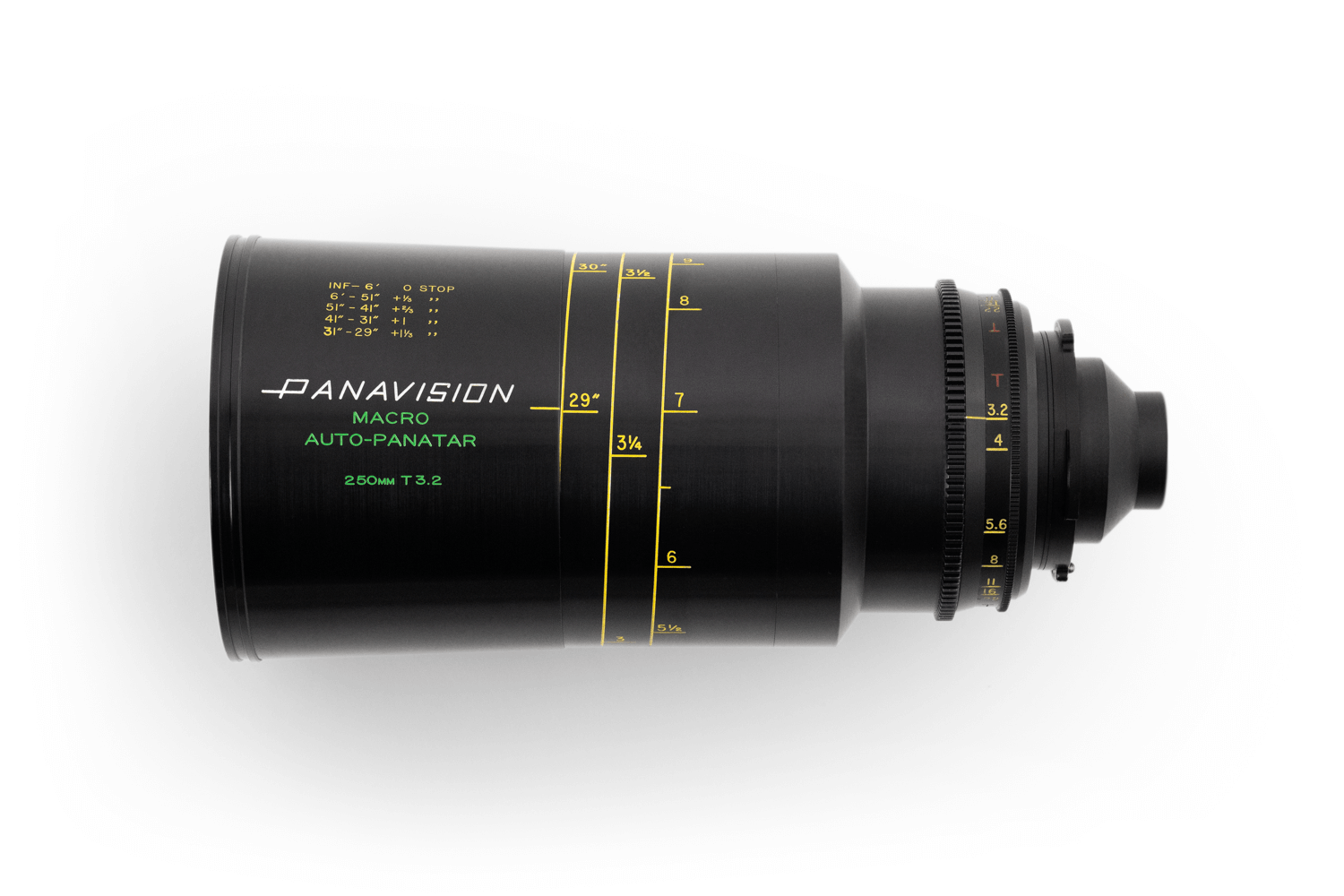 Panavision Macro Anamorphic Prime (MAP) lenses include five focal lengths from 55mm to 250mm. The three longest focal lengths share a common speed of T3.2, while the 55mm and the 90mm offer maximum apertures of T2.5 and T4.3, respectively. Close focus across the range varies from 10 to 29 inches.