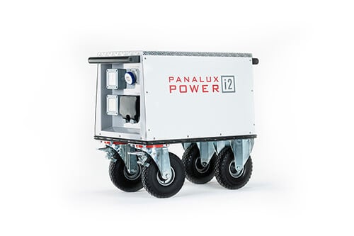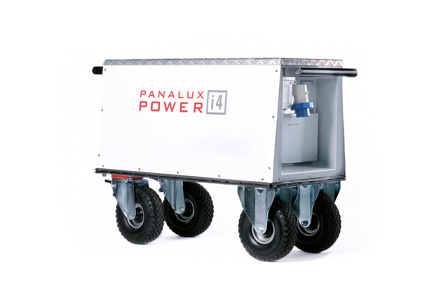 The Panalux Power i-Series range of portable lithium-ion battery arrays provide instant, silent, emission-free all-electric power for a variety of on- and near-set applications. The i4 offers a capacity of 10kWh and a maximum load of 4kW to handle more power-hungry devices like tea urns, media servers, and film lights.