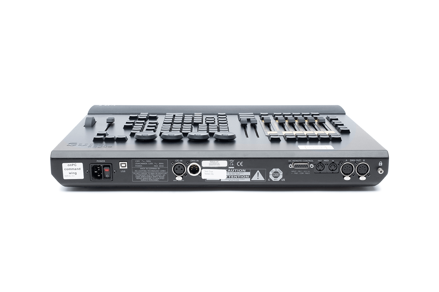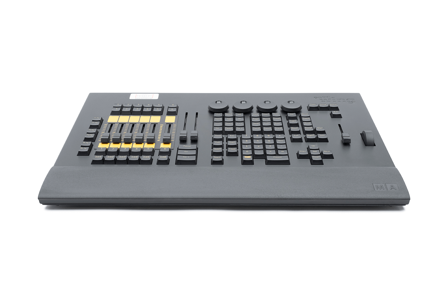 The MA onPC Command Wing incorporates the command section of the GrandMA2 console and connects via USB to a computer running GrandMA2 onPC software.