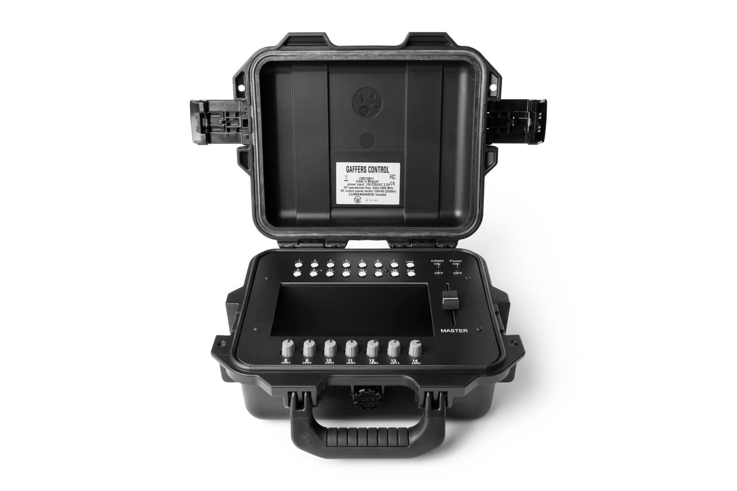 Spots Unlimited’s Gaffers Control is a compact, portable DMX console housed in a water-resistant StormCase. Weighing only 6 pounds and offering 14 addressable banks (512 DMX addresses), the unit features a 7” capacitive touchscreen, integrated LumenRadio CRMX transmitter, integrated 70Wh battery providing up to 10 hours of operation, and a built-in DMX library for a wide range of manufacturers.