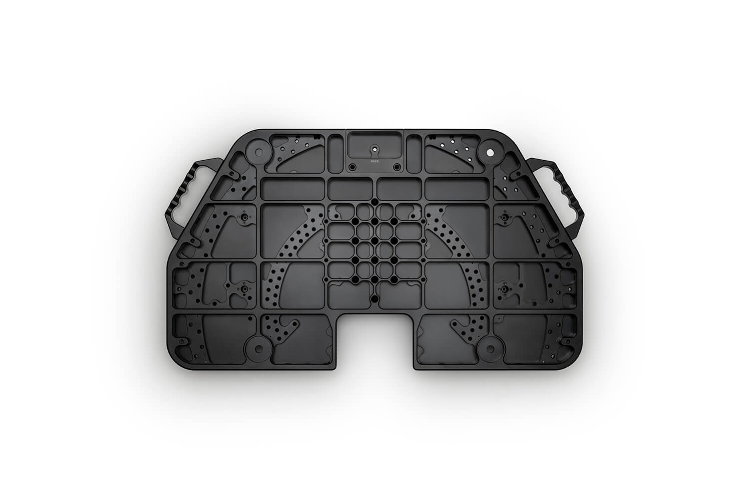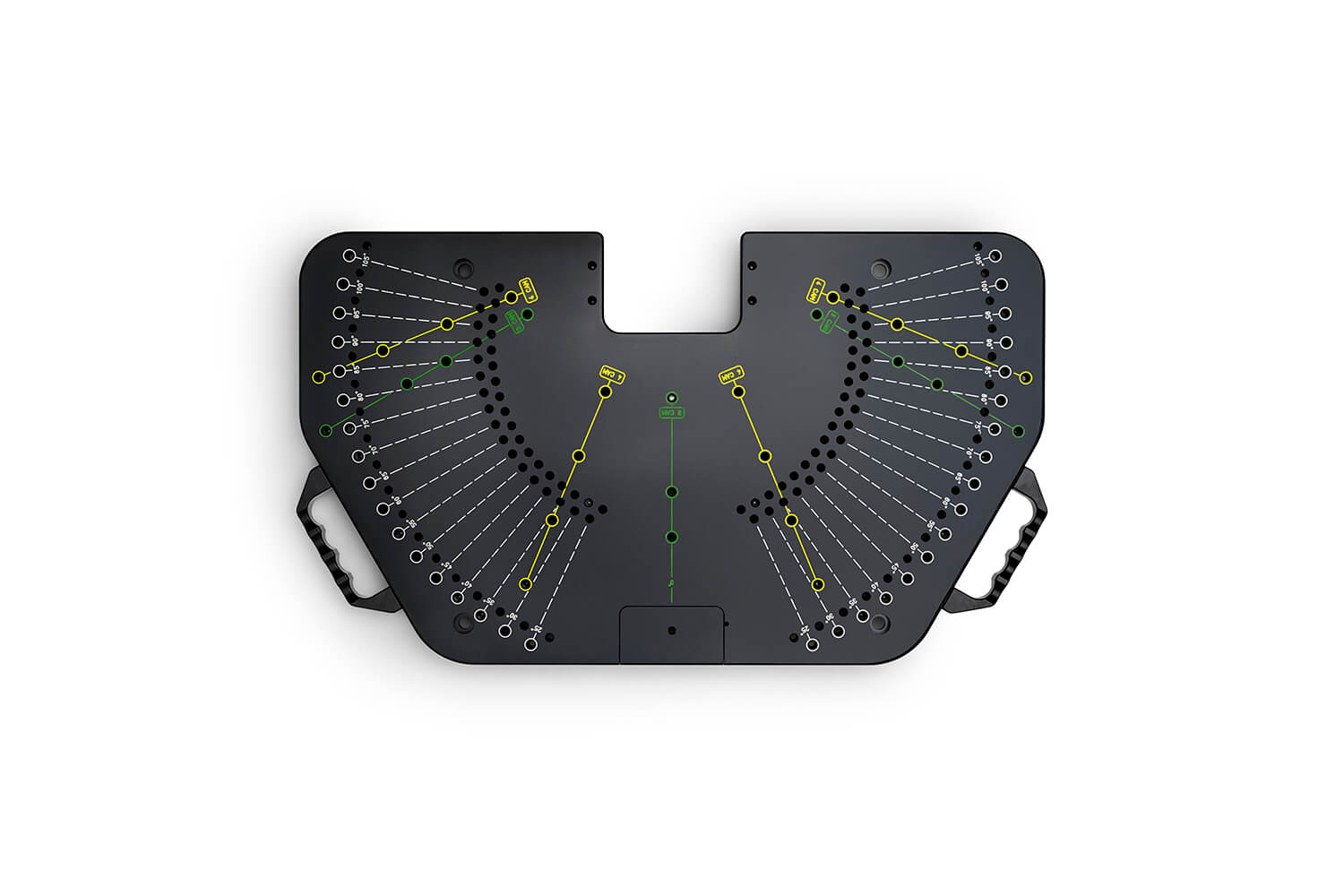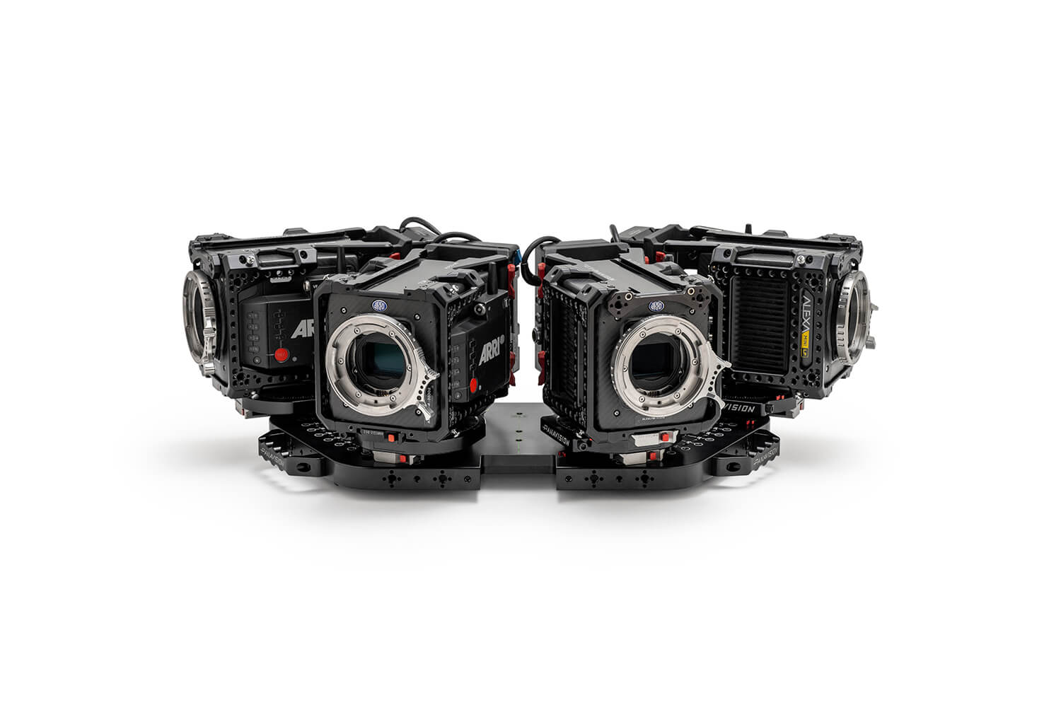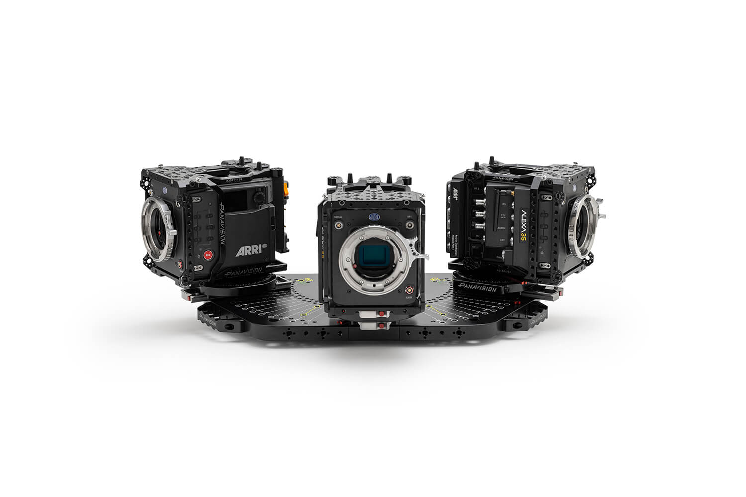 Panavision’s proprietary, modular camera-array baseplates provide unmatched precision and flexibility for capturing background plates for use in LED volumes or traditional VFX workflows. A single plate allows for a greater-than-180° field of view with three or four cameras arranged in either a toe-in or toe-out configuration. Two plates can be connected for a 360° array with six to nine cameras in a variety of configurations, including the option of having one upward-facing center camera. The Medium Camera Array is compatible with camera systems up to the size of the Sony Venice 2. Additionally, Panavision offers a purpose-built solution for mounting the Medium Camera Array — in either a 180° or 360° configuration — on a Libra remote head. The camera array system is complemented by Panavision’s precision-matched and calibrated Array Lenses.