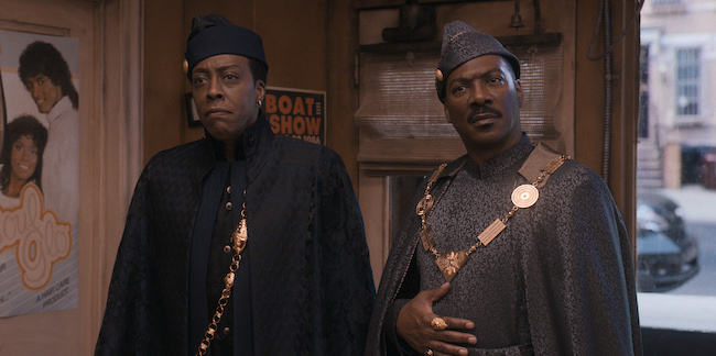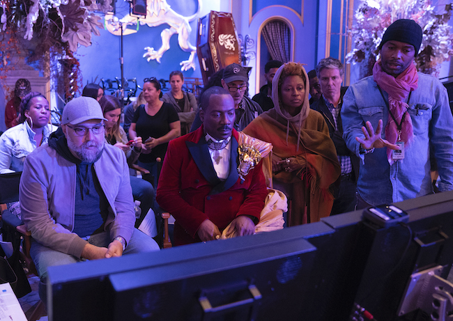 For the sequel, Brewer reteamed with cinematographer Joe “Jody” Williams following their work together on the series Empire. “I was honored and ecstatic to get a chance to help shape this next chapter of the story,” Williams shares. “Like most people of my generation, especially Black people, I had a nostalgic connection to the first movie. It was one of the first times we saw ourselves projected in this way, as royalty. It had a profound and positive effect on us — and it was funny! It was Eddie and Arsenio, and they transcended any images we had ever seen of ourselves on the big screen. The way I remembered it in my heart was that it was the most beautiful thing I had seen with Black people projected in a positive light, both women and men.”