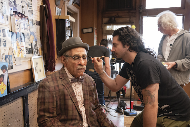 So it was that Brewer and Williams stood side-by-side at the monitor while preparing to shoot a scene inside a neon-tinged storefront church, home to Queens’ legendary Rev. Brown (Arsenio Hall in a prosthetic guise). The director looked at the image on the monitor, he recalls, “and I said to Jody, ‘I feel like I’m back in —’ and we both said at the time, ‘Hustle & Flow,’” referring to the director’s 2005 feature. Brewer continues, “It felt like it was through a sweaty Craig Brewer filter, and Jody said, ‘Yeah, that’s what I’m going for.’ That was a really great moment for me.”