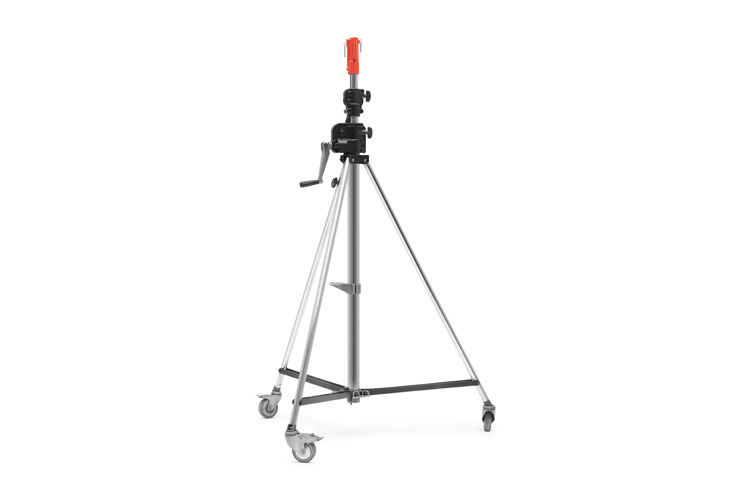 This heavy-duty stand extends up to 97.24” (247cm) and features a leveling leg for uneven terrain.