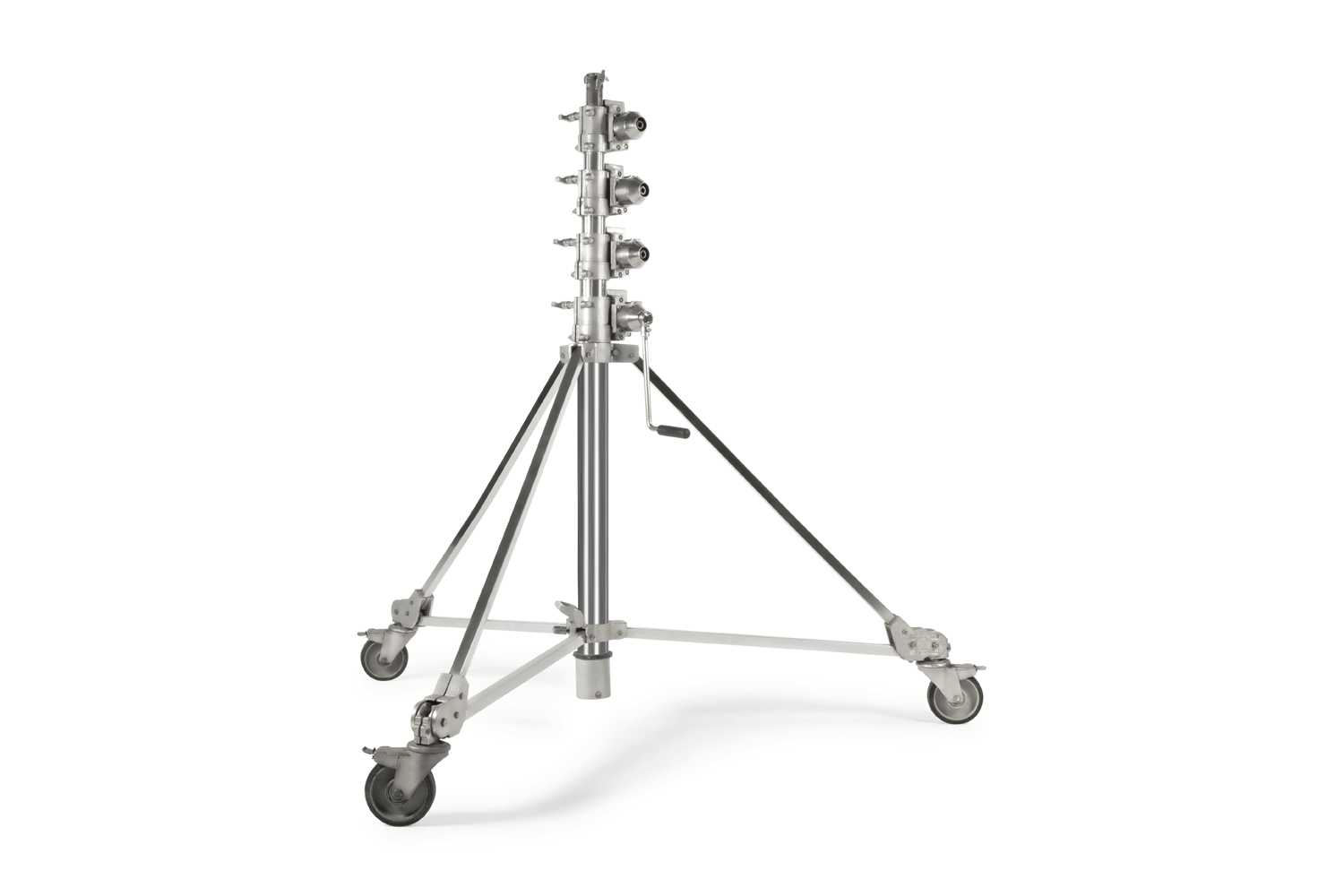 Featuring five sections and four risers, this stand can reach a maximum height of 240.16” (610cm) and support payloads up to 154.32 lbs. (70kg).
