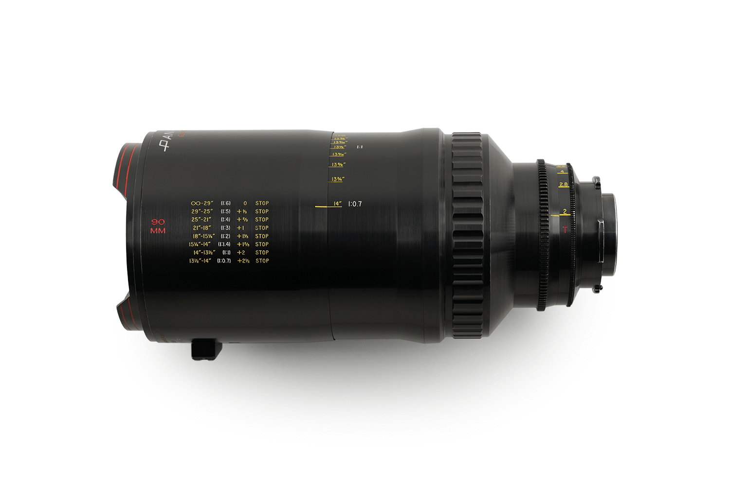Panavision Macro lenses match Primo primes in both color and performance. The focal lengths in the Macro series range from 40mm to 200mm, with maximum apertures ranging from T1.4 (for the 50mm) to T4 (for the 200mm). The 90mm Macro focuses through normal magnification ratios to macro (1:1) and down to micro (where the image on the film or sensor is larger than life-size).