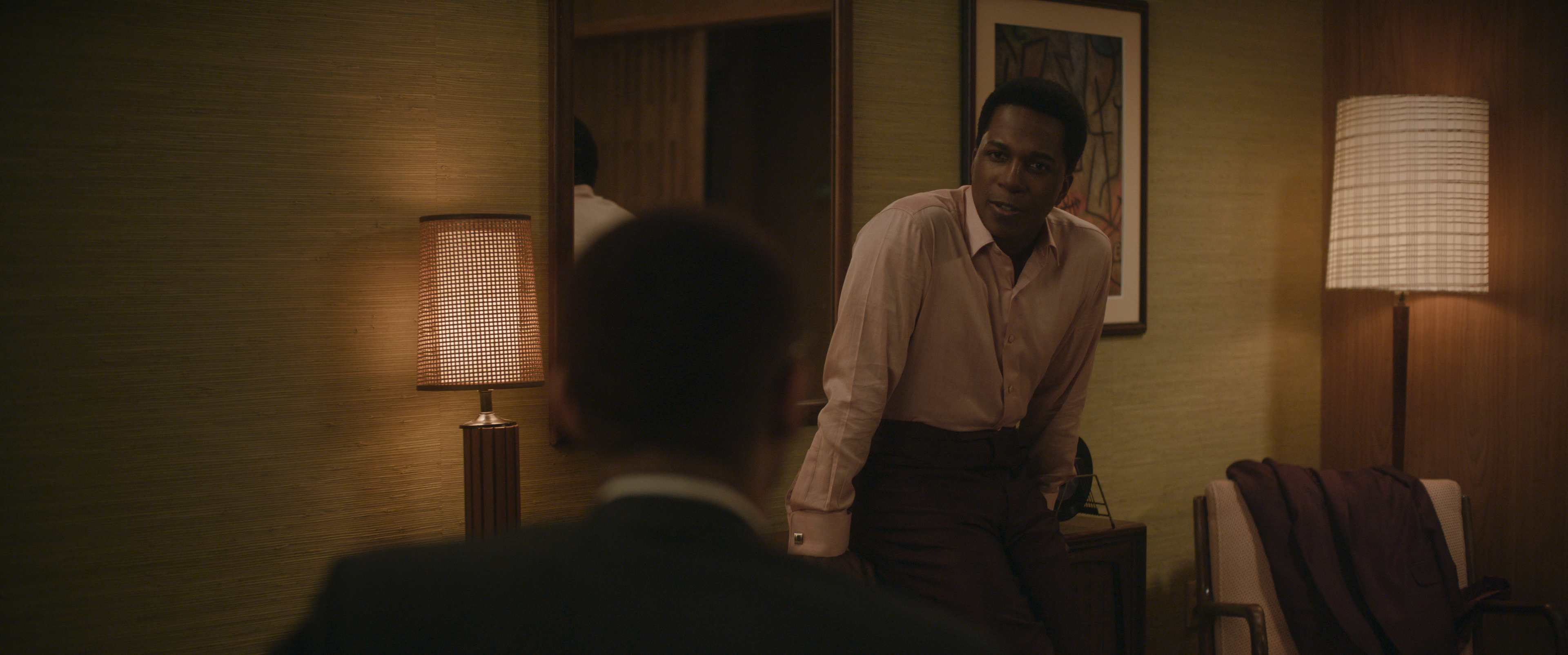 Once the characters settle into Malcolm X’s hotel room following Clay’s victory over Liston, a chief objective for the filmmakers was to preserve a feeling of continuity with the lighting as the actors move around. “We were lighting these four men in such a tiny space,” Reiker reflects, “and we were doing everything we could to keep the light off the walls — but then someone would go into a dark corner, and I’d be like, ‘No!’ But Ian was a genius at following the actors across the room, keeping them balanced, and taking down the walls. He’s a wonderful collaborator.”