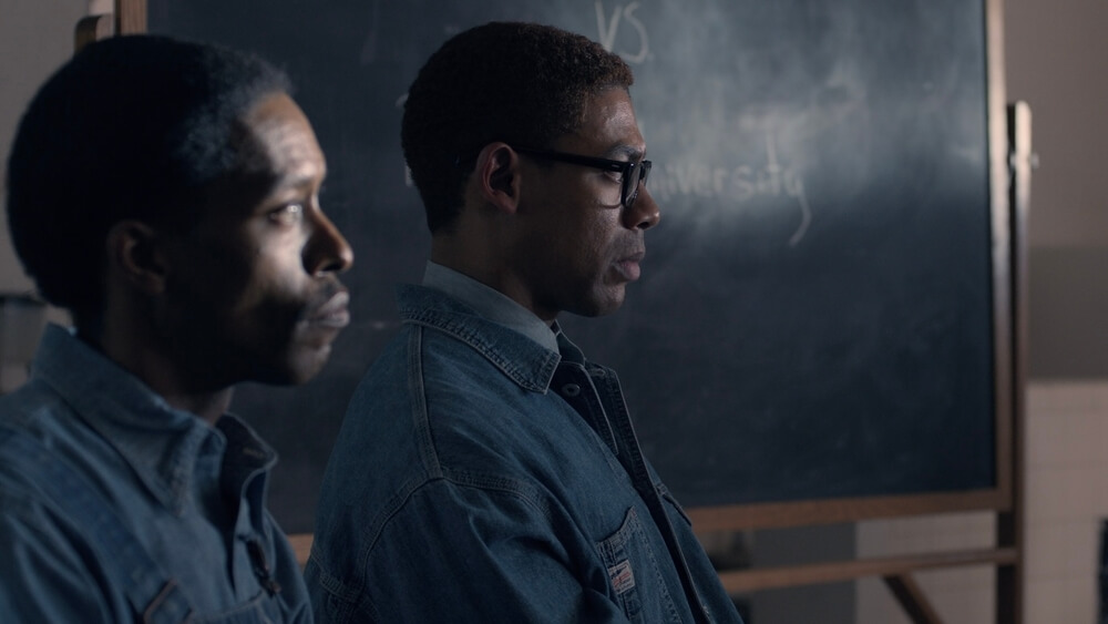 We used Alexa 35 cameras with classic Panavision Primo lenses. We paired the Primos with modified Anamorphic Flare Attachments for signature punctuations throughout the journey — moments that connected MLK or Malcolm X to their past, or out-of-body experiences when the stress and fear became so intense. I’ve used Primos many times, so I know their qualities intimately. I knew they would render the huge range of beautiful skin tones accurately and represent the characters in a way that felt like you could reach out and touch them. Clarity, not sharpness. The perfect combo.